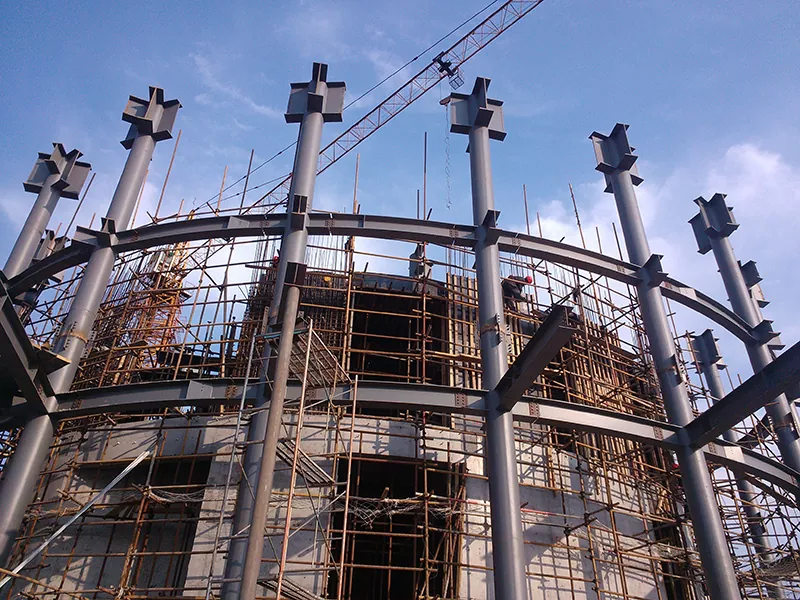 Isakhiwo sensimbi esenziwe sabaqandule esiphakeme wuhlobo olusha lwefomu lokwakha elisebenzisa izingxenye ezimiswe efektri ezifana nemigwaqo yensimbi kanye namakholomu ensimbi njengohlelo lokuthwala umthwalo, oluqoqiwe kubuchwepheshe obunamandla noma ubuchwepheshe be-welding. Izici ezingasindi futhi ezinamandla zensimbi zinika amandla ama-spans amakhulu kanye nezinhlaka zendawo eziguqukayo, zinciphisa izindonga ezisindayo zezakhiwo zokhonkolo zendabuko kanye nokwenza ngcono ukusetshenziswa kwesikhala. Ngasikhathi sinye, bahlangabezana namazinga wokwakha oluhlaza - isilinganiso sokuphinda sisebenze kabusha sensimbi sidlula ama-95%, futhi uthuli lokwakha esizeni luncishisiwe ngo-70%. Zisetshenziswa kabanzi ezakhiweni zamahhovisi, amafulethi, amahhotela kanye nezinye izakhiwo eziphakeme ngaphezulu kwamamitha ayi-100, namacala abamelelayo kufaka phakathi ukwakheka kwangaphandle kwe-shuth ye-shanghai tower kanye ne-shenzhen ping isikhungo sezimali.